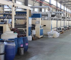 引進國外水刺法生產流水線,重型劍桿織布機臺,整形、熱熔、縫制、設備配套齊全。